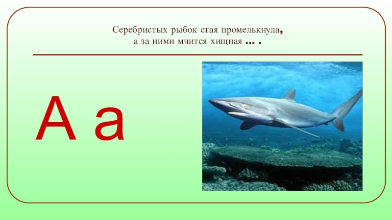 Серебристых рыбок стая промелькнула,  а за ними мчится хищная … .А а