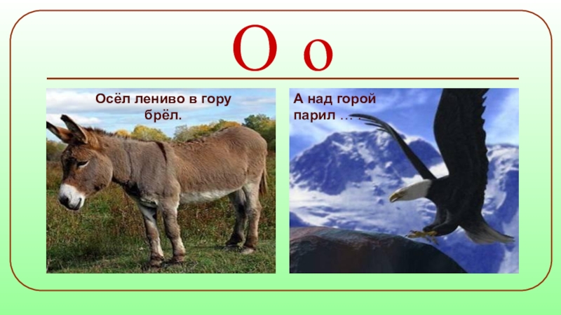 О о Осёл лениво в гору брёл.А над горой парил … .