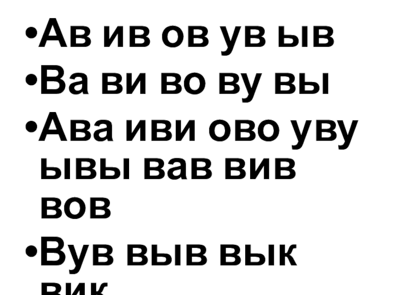 Ав ив ов ув ыв Ва ви во ву выАва иви ово уву ывы вав вив вовВув выв вык вик
