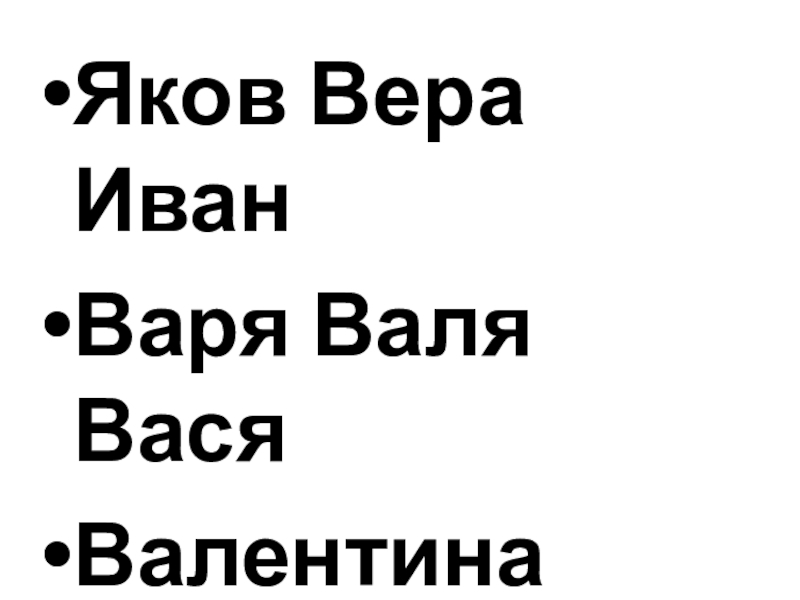 Яков Вера ИванВаря Валя ВасяВалентина ВаряВероника Вова