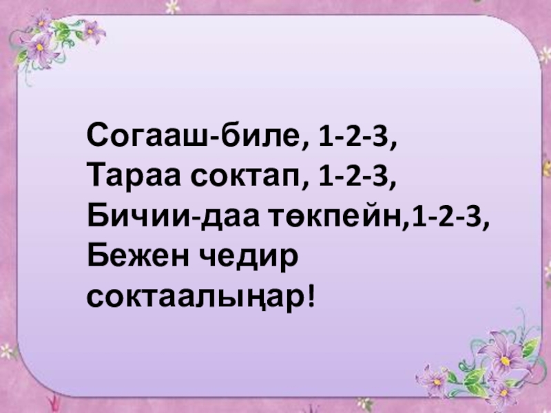 Слайд 6Согааш-биле, 1-2-3,