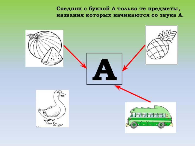 Слайд 9Соедини с буквой А только те предметы, названия которых начинаются со