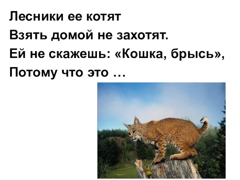 Лесники ее котятВзять домой не захотят.Ей не скажешь: «Кошка, брысь»,Потому что это …