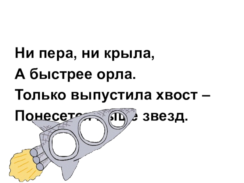 Ни пера, ни крыла,А быстрее орла.Только выпустила хвост – Понесется выше звезд.