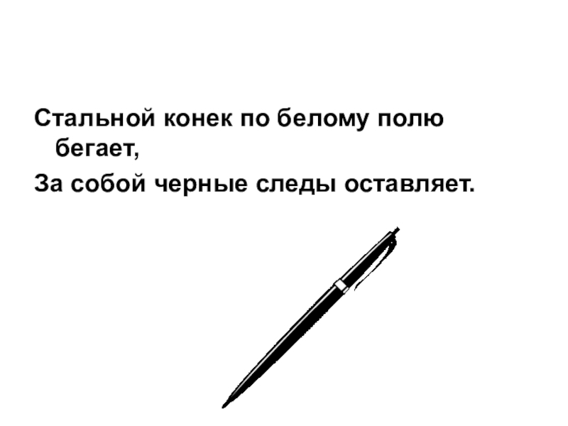 Стальной конек по белому полю бегает,За собой черные следы оставляет.
