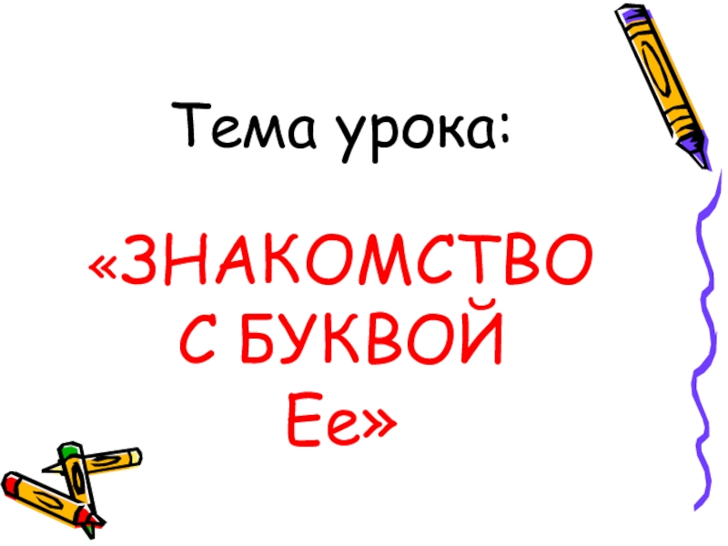 Слайд 5Тема урока: «ЗНАКОМСТВО С БУКВОЙ Ее»