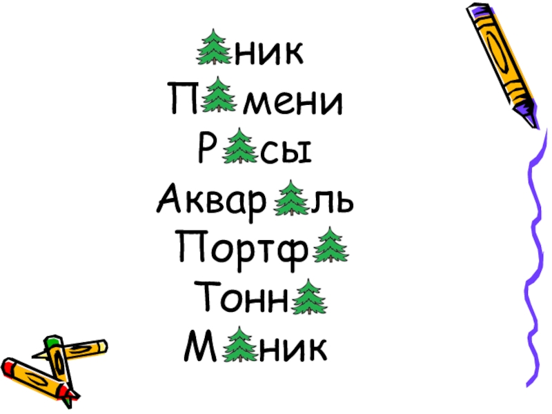 Слайд 12…ник П… мени Р… сы Аквар …ль Портф… Тонн… М… ник