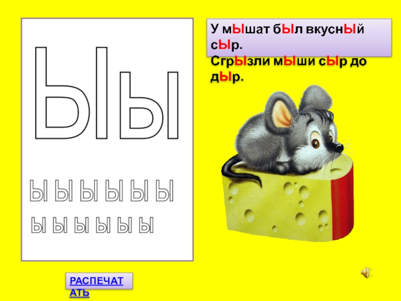 РАСПЕЧАТАТЬУ мЫшат бЫл вкуснЫй сЫр. СгрЫзли мЫши сЫр до дЫр.