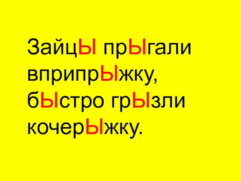 Слайд 16ЗайцЫ прЫгали вприпрЫжку, бЫстро грЫзли кочерЫжку.