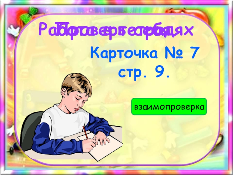Это сайт презентаций, где можно хранить и обмениваться своими презентациями, докладами, проектами, шаблонами в формате PowerPoint с другими пользователями. Мы помогаем школьникам, студентам, учителям, преподавателям хранить и обмениваться учебными материалами.