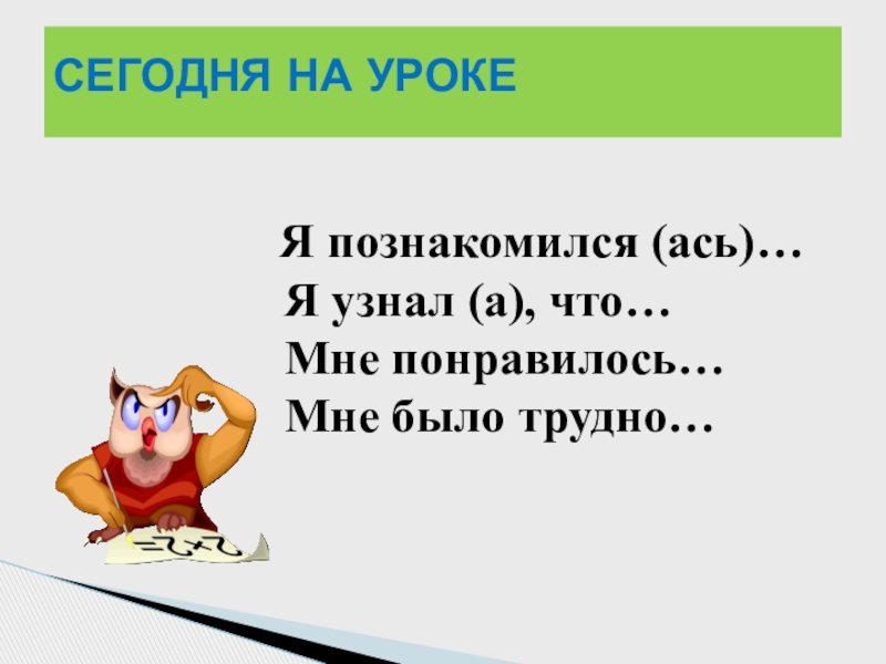 Я познакомился (ась)… Я узнал (а), что… Мне понравилось… Мне было трудно…