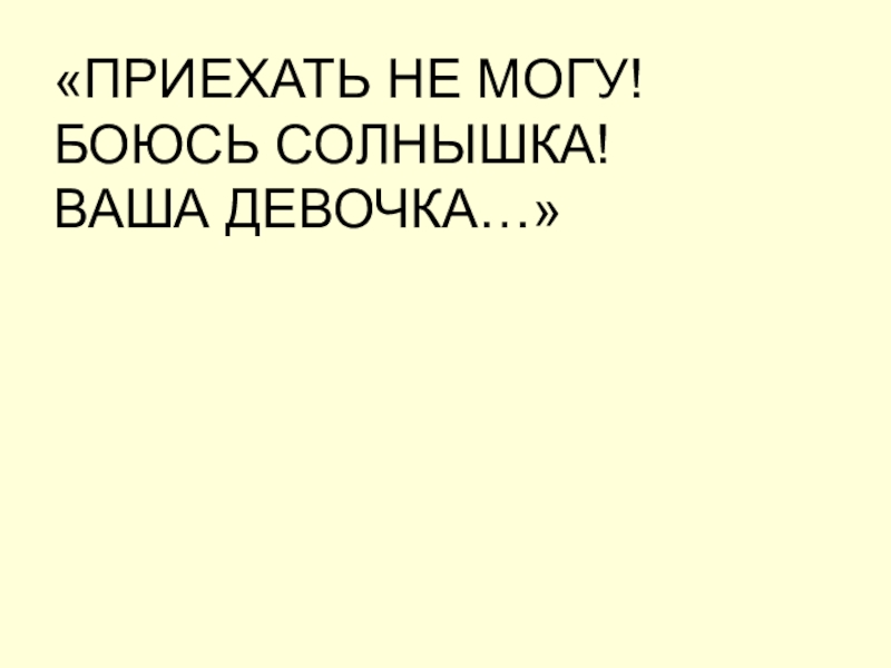 Слайд 37«ПРИЕХАТЬ НЕ МОГУ! БОЮСЬ СОЛНЫШКА! ВАША ДЕВОЧКА…»