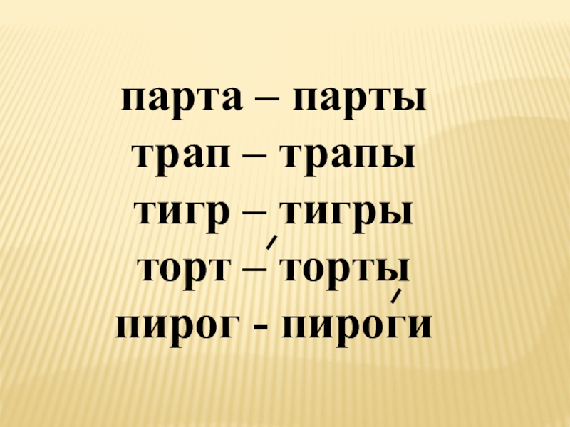 парта – партытрап – трапытигр – тигрыторт – тортыпирог - пироги
