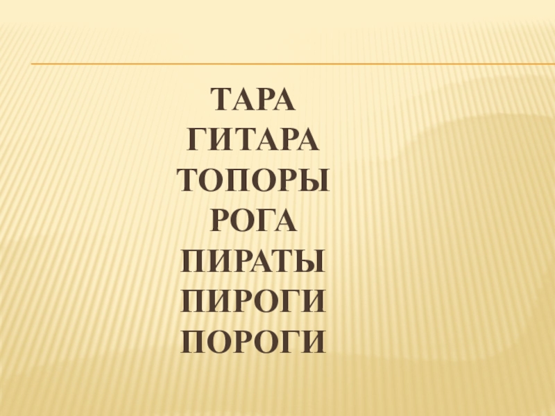 Слайд 8ТАРА ГИТАРА ТОПОРЫ РОГА ПИРАТЫ ПИРОГИ ПОРОГИ