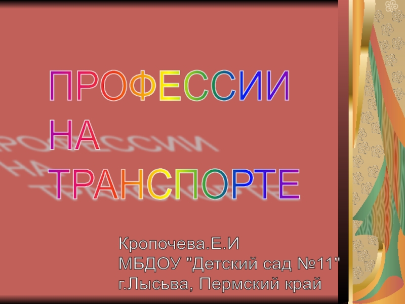 ПРОФЕССИИ  НА  ТРАНСПОРТЕКропочева.Е.И  МБДОУ