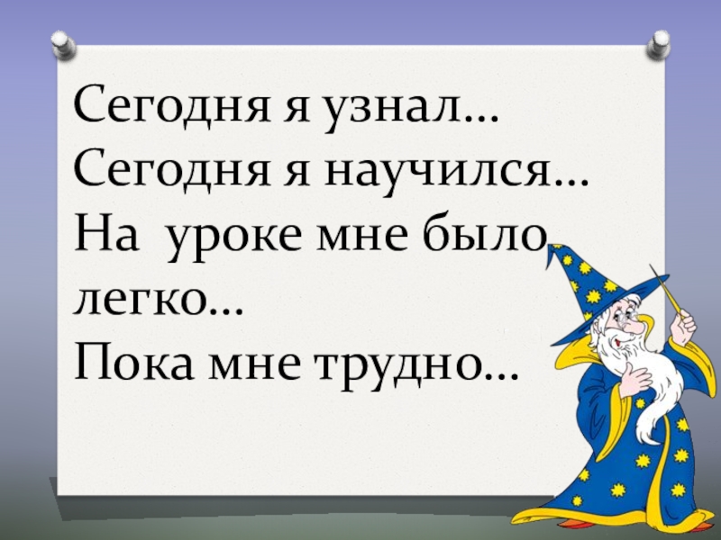 Сегодня я узнал…Сегодня я научился…На уроке мне было легко…Пока мне трудно…