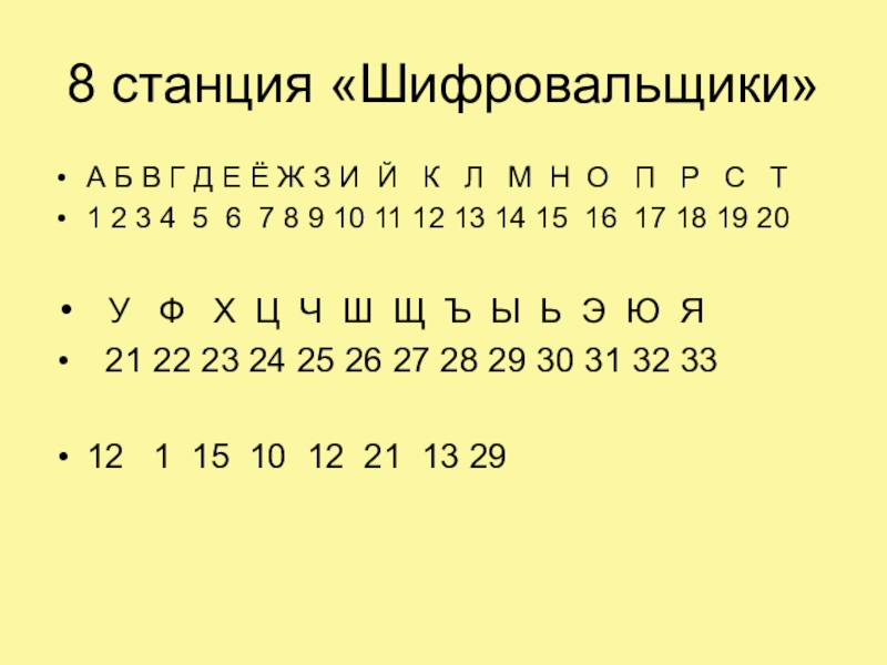 8 станция «Шифровальщики»А Б В Г Д Е Ё Ж З И Й  К  Л
