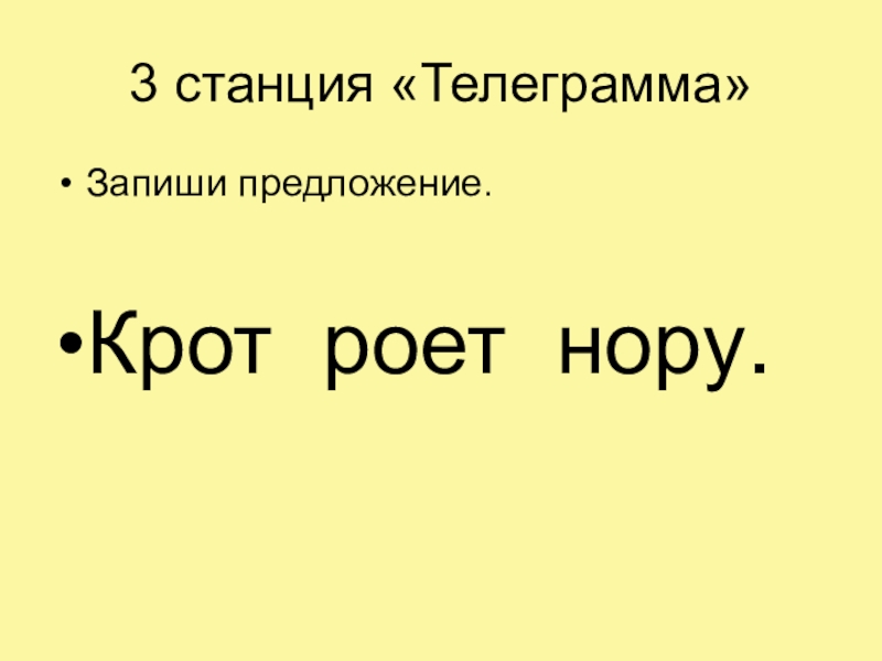 3 станция «Телеграмма»Запиши предложение.Крот роет нору.