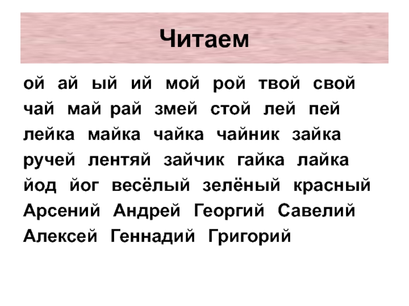 Читаемой  ай  ый  ий  мой  рой  твой  свойчай  май