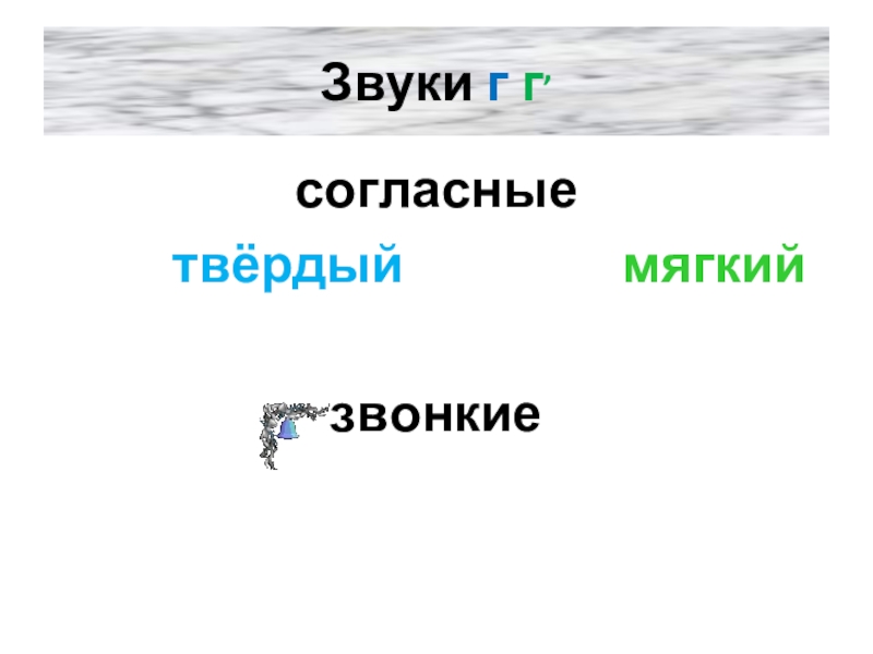 Звуки г г,согласные     твёрдый         мягкийзвонкие