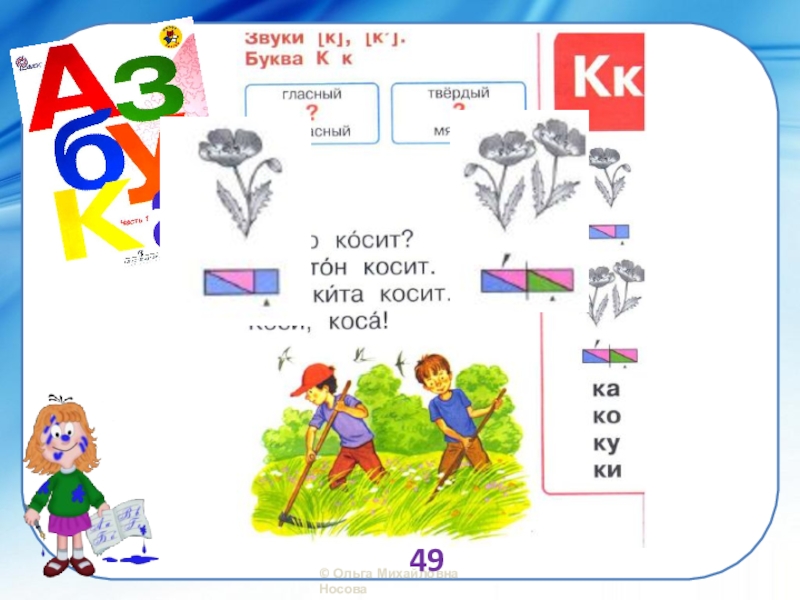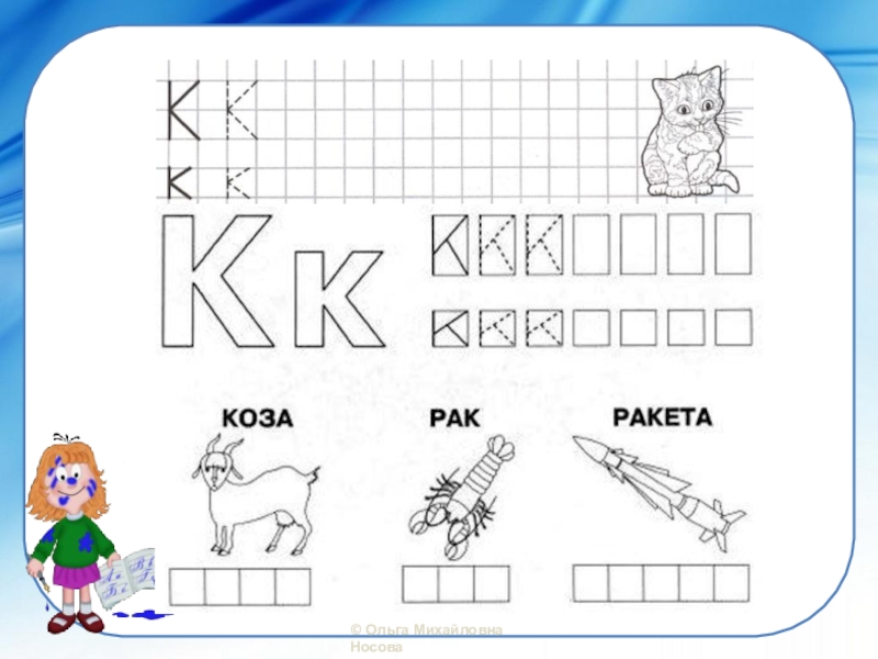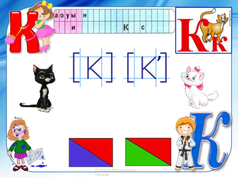 Презентация, доклад по обучению грамоте Звук [к], [к`]. Буква К, к.