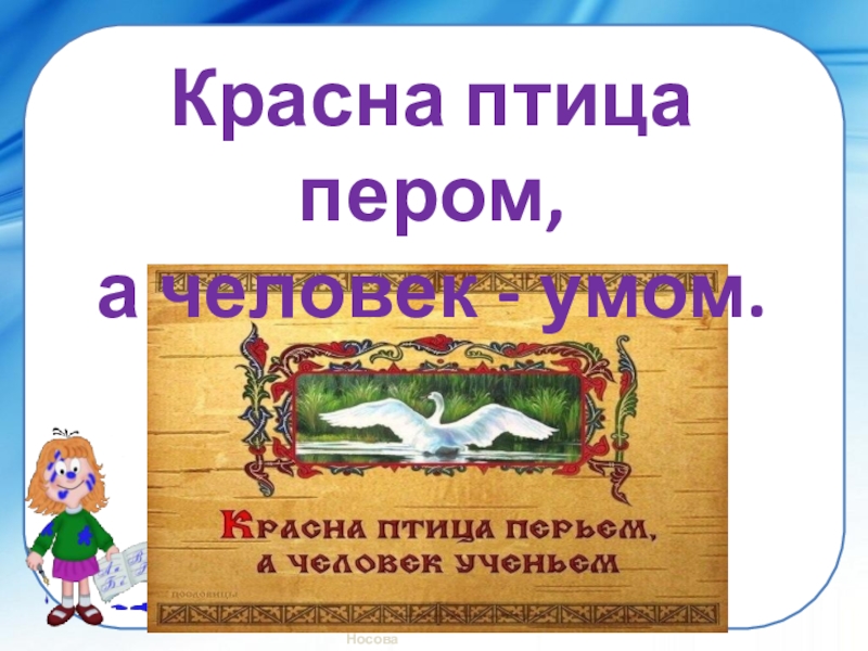 Красна птица пером,а человек - умом.