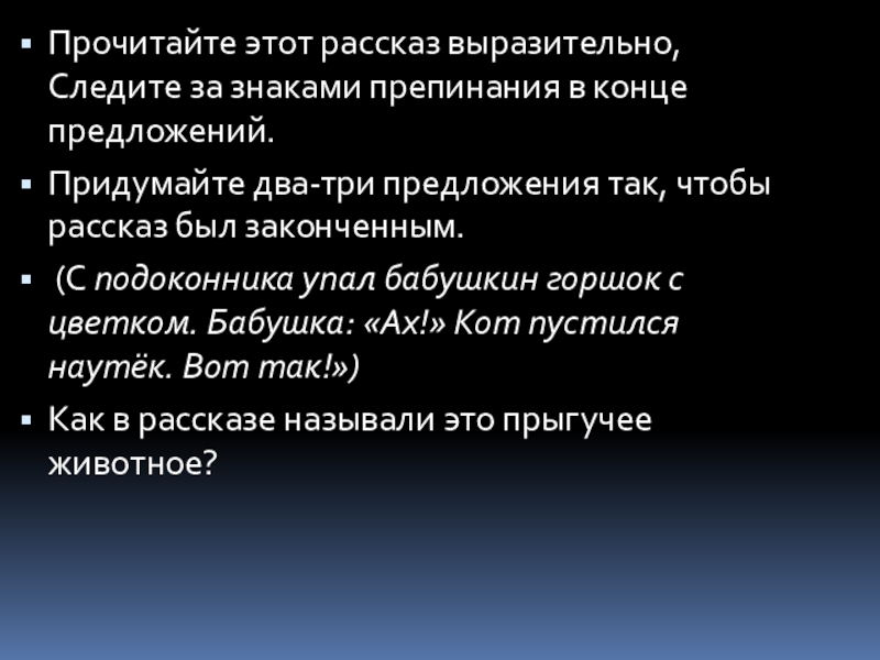 Придумайте два-три предложения так, чтобы рассказ был законченным.