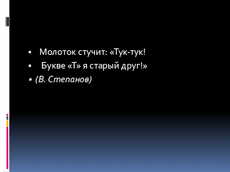 Произнесите вторую часть звучания часов. (Так — слышим звук [т]. Он согласный, твёрдый, потому что за ним следует гласная а. Этот звук глухой.)