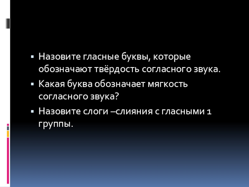 Слайд 4Назовите гласные буквы, которые обозначают твёрдость согласного звука.