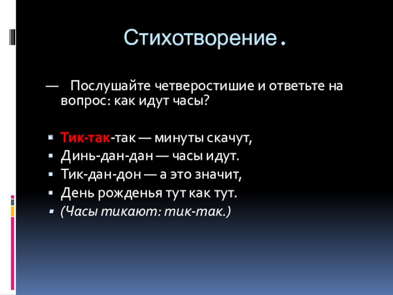 — Послушайте четверостишие и ответьте на вопрос: как идут часы?