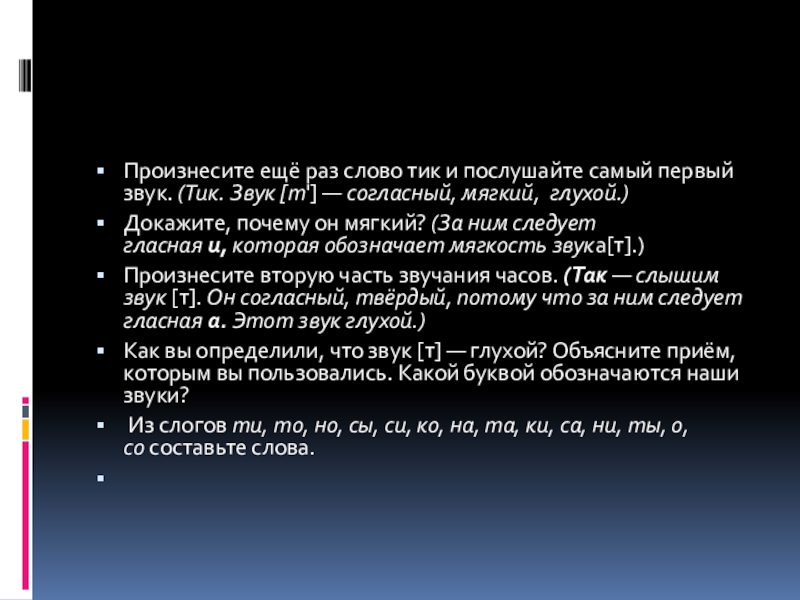 Слайд 12Произнесите ещё раз слово тик и послушайте самый первый звук. (Тик. Звук