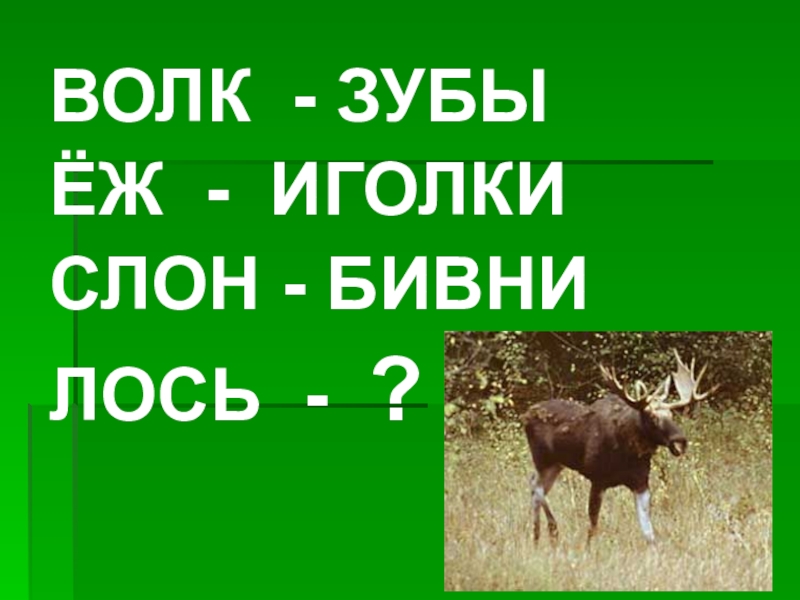 ВОЛК - ЗУБЫЁЖ - ИГОЛКИСЛОН - БИВНИЛОСЬ - ?