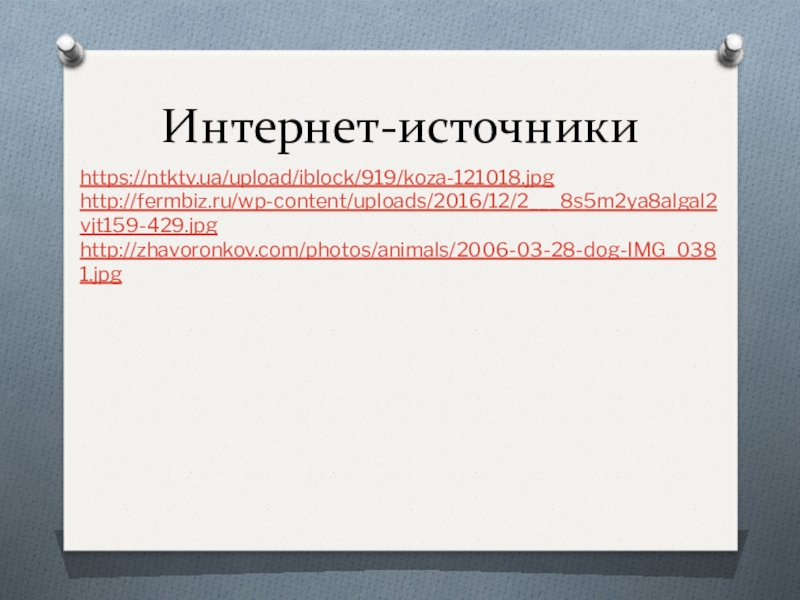 Интернет-источникиhttps://ntktv.ua/upload/iblock/919/koza-121018.jpghttp://fermbiz.ru/wp-content/uploads/2016/12/2___8s5m2ya8algal2vjt159-429.jpghttp://zhavoronkov.com/photos/animals/2006-03-28-dog-IMG_0381.jpg