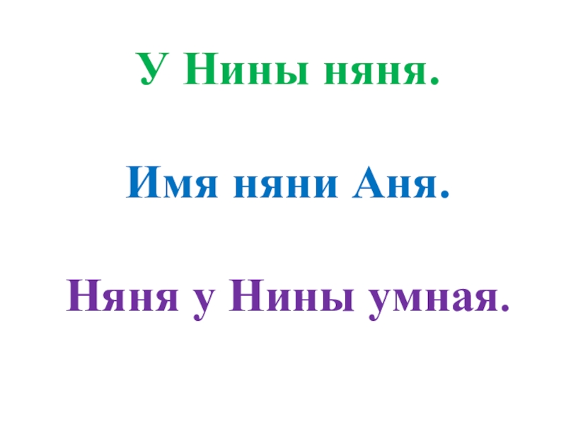 Слайд 16 У Нины няня. Имя няни Аня. Няня у Нины умная.