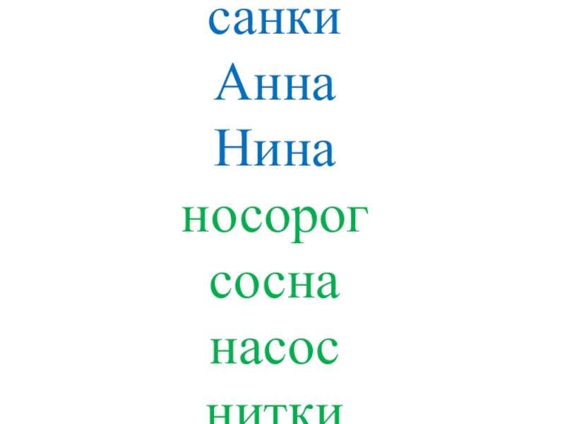 Слайд 15нога нос санки Анна Нина носорог сосна насос нитки Наташа