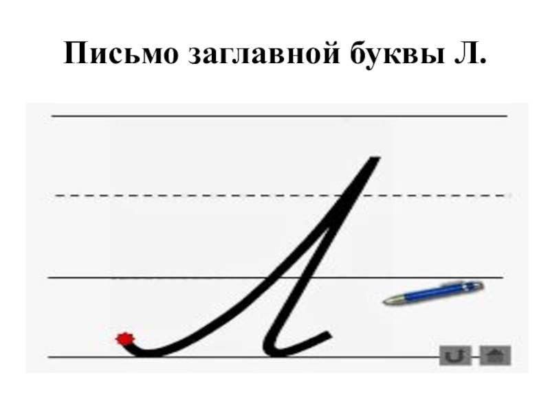 Презентация, доклад по обучению письму на тему Письмо заглавной буквы Л.
