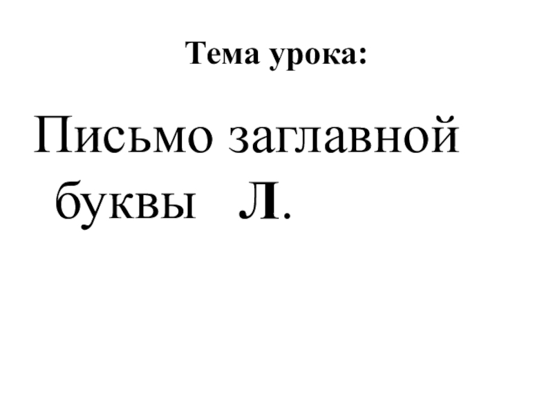 Тема урока:Письмо заглавной буквы  Л.