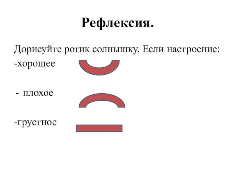 Рефлексия.Дорисуйте ротик солнышку. Если настроение:-хорошее    плохое-грустное