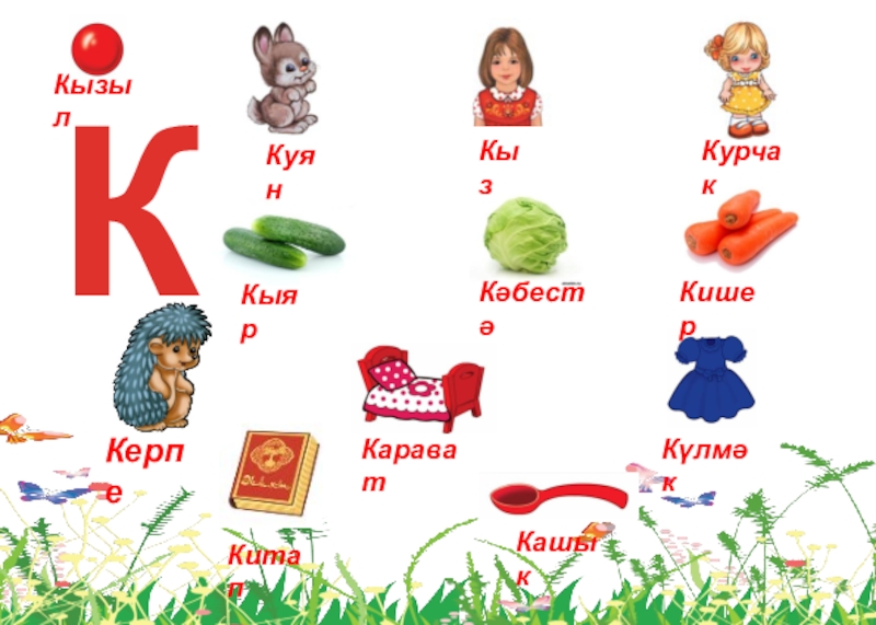 ККуян Кыз Курчак Кыяр Кәбестә Кишер Карават Күлмәк Кашык Китап Кызыл Керпе