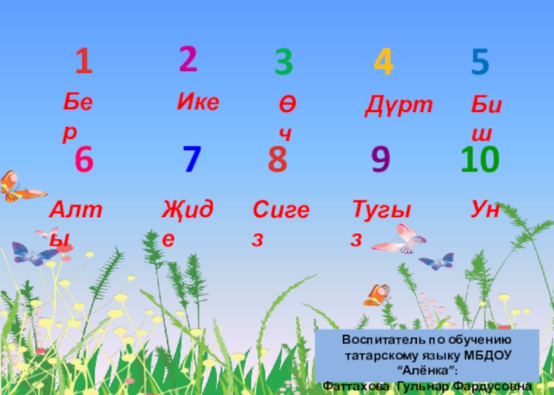 12345678910Бер Ике Өч Дүрт Биш Алты Җиде Сигез Тугыз Ун Воспитатель по обучению татарскому языку МБДОУ “Алёнка”:Фаттахова