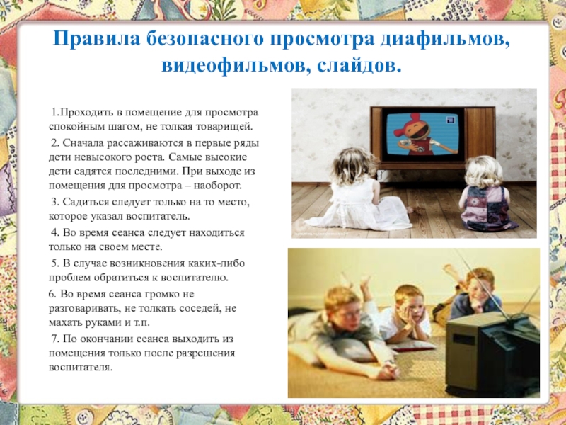 Правила безопасного просмотра диафильмов, видеофильмов, слайдов.