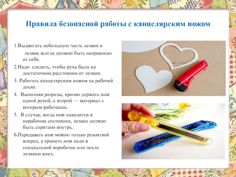 4. Выполняя разрезы, крепко держать нож одной рукой, а второй — материал с которым работаешь.