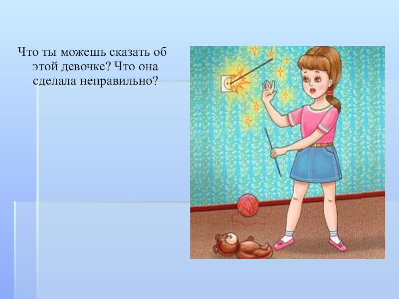 Слайд 4Что ты можешь сказать об этой девочке? Что она сделала неправильно?