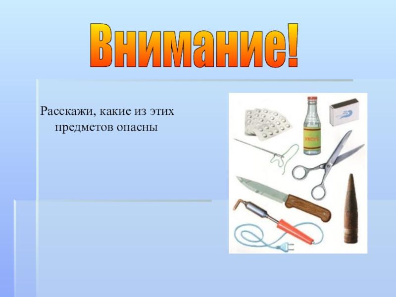 Расскажи, какие из этих предметов опасныВнимание!