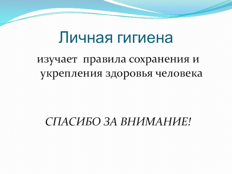 Личная гигиена изучает правила сохранения и укрепления здоровья человекаСПАСИБО ЗА ВНИМАНИЕ!