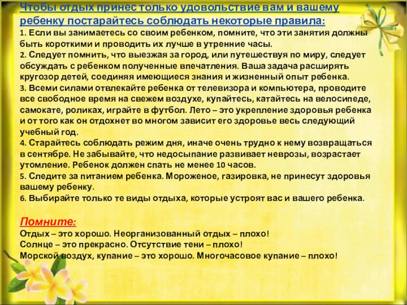 Отдых – это хорошо. Неорганизованный отдых – плохо!
