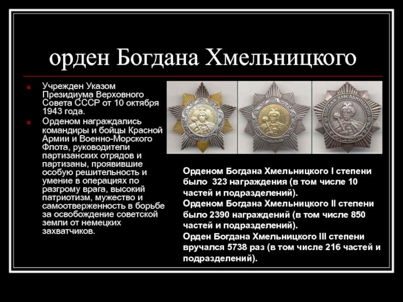 Орден Богдана Хмельницкого III степени вручался 5738 раз (в том числе 216 частей и подразделений).