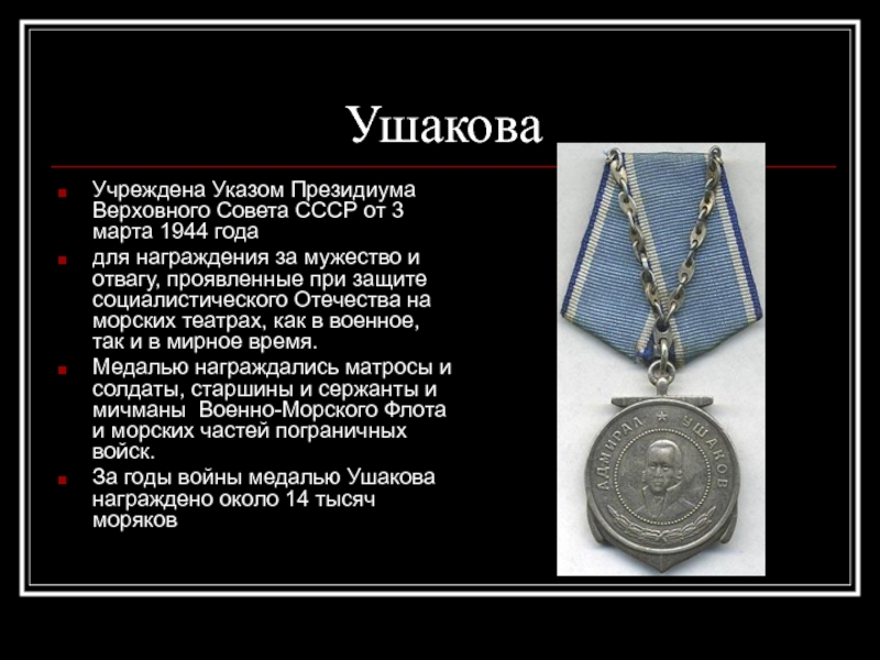 За годы войны медалью Ушакова награждено около 14 тысяч моряков