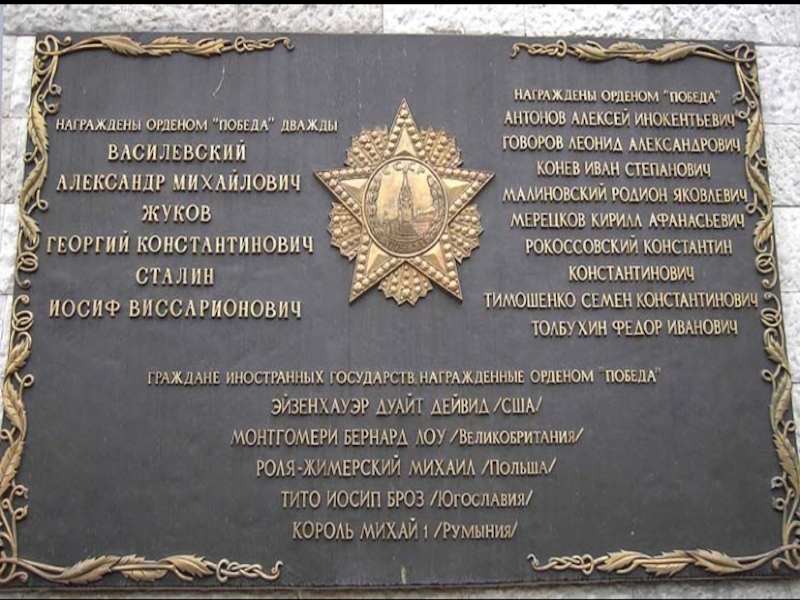 Первым награжденным орденом Победы стал Маршал Советского Союза Г.К. Жуков
