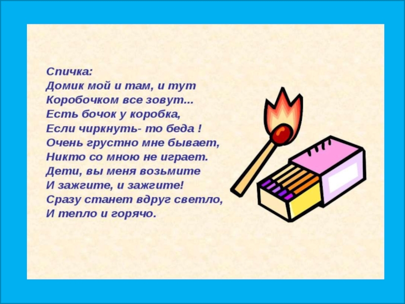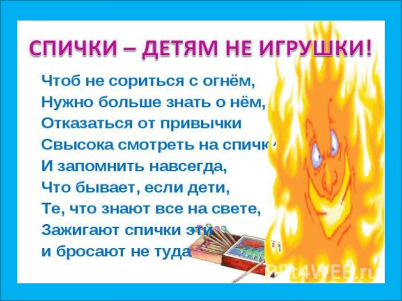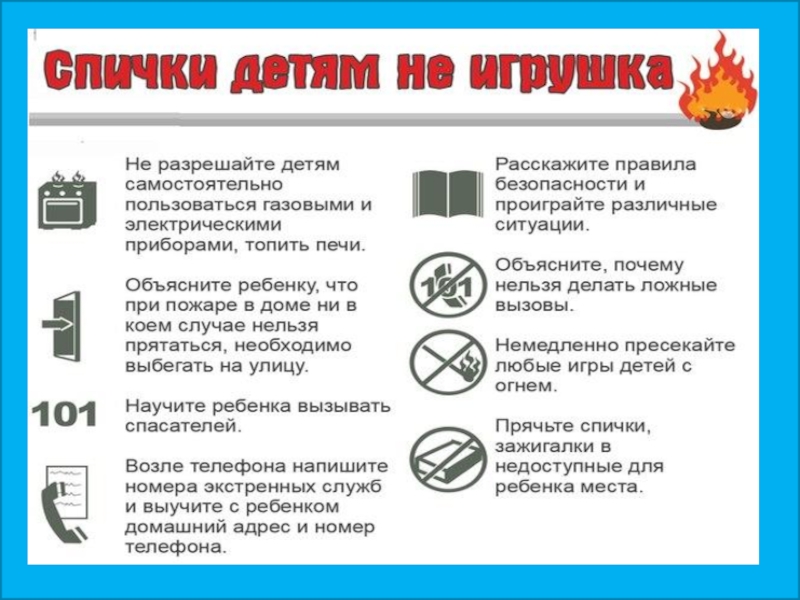 Презентация, доклад по ОБЖ на тему Спички - не игрушка, огонь- не забава